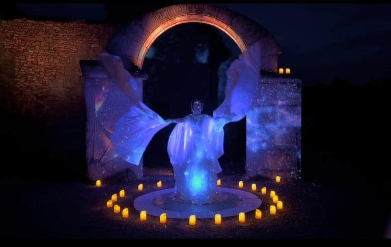 TALISMAN constitue la signature scénographique et visuelle d’Eä Alba, développée et présentée dans ses créations et performances.