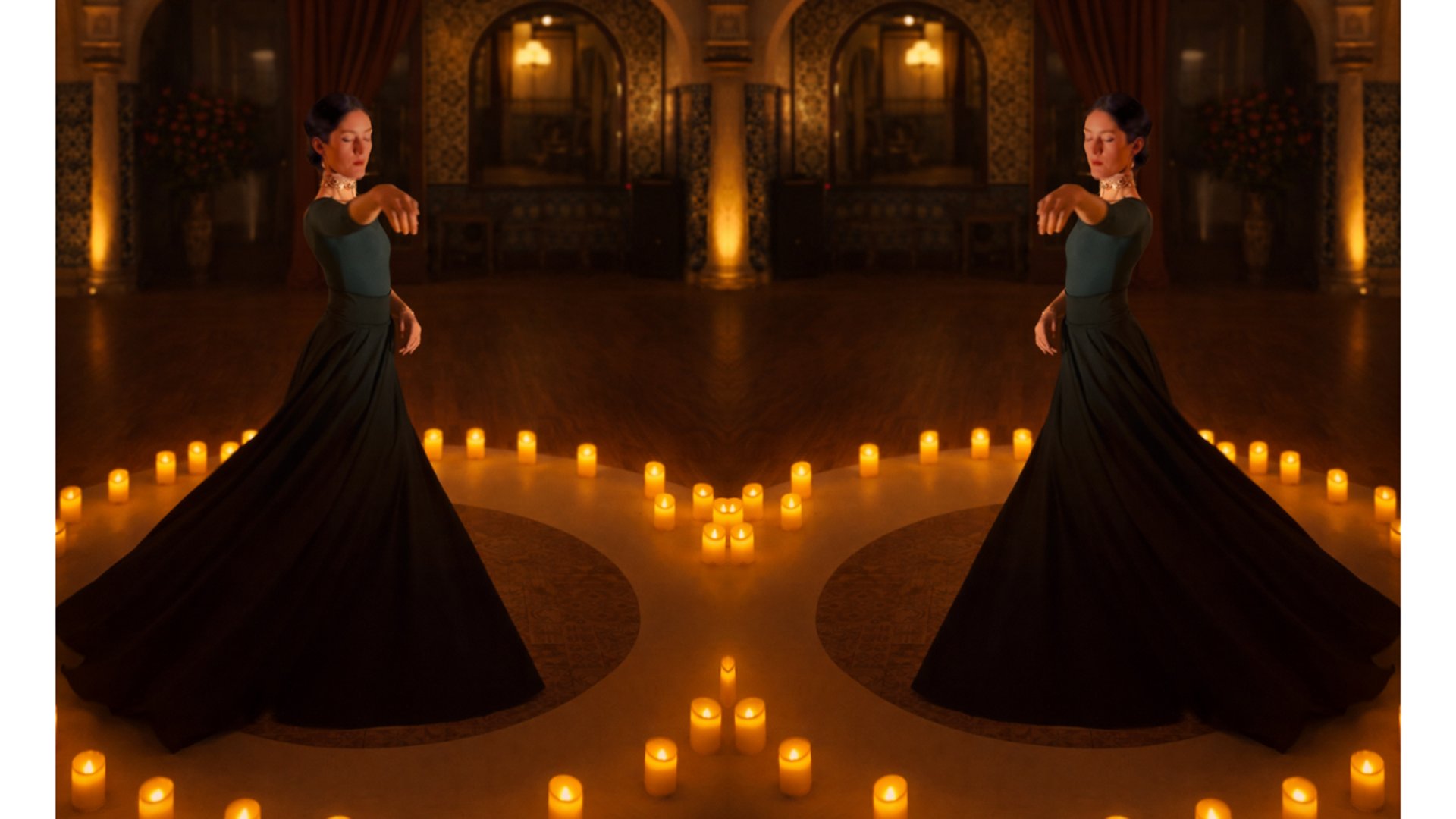 Dans une quête constante d’harmonie, je travaille également la lumière, les tissus et la scénographie pour soutenir la présence, et inviter à l'émerveillement.